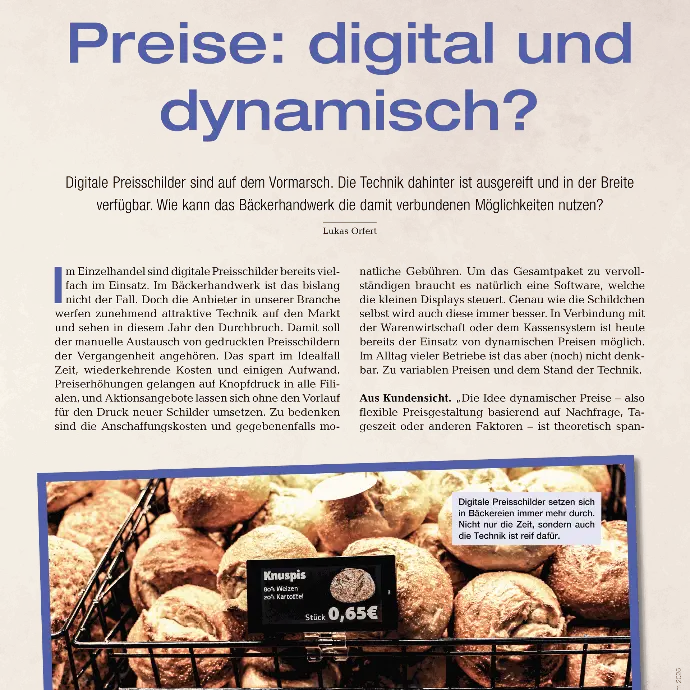 Digitale Preisschilder könnten im Bäckerhandwerk bald den Durchbruch schaffen. Während der Einzelhandel längst auf die smarte Technik setzt, steht sie nun auch Bäckereien in ausgereifter Form zur Verfügung. Das verspricht weniger Aufwand, schnelle Preisänderungen per Knopfdruck – und neue Möglichkeiten im Zusammenspiel mit Kassensystemen und Warenwirtschaft. Doch lohnt sich der Umstieg? Ein Blick auf Chancen, Kosten und den aktuellen Stand der Technik.