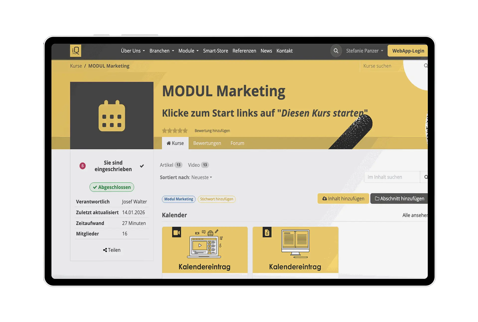 Mit unserer E-Learning Plattform können Nutzer jederzeit nachschlagen, Funktionen nachlernen oder sich gezielt weiterbilden – ohne lange Support-Wartezeiten oder komplizierte Handbücher.