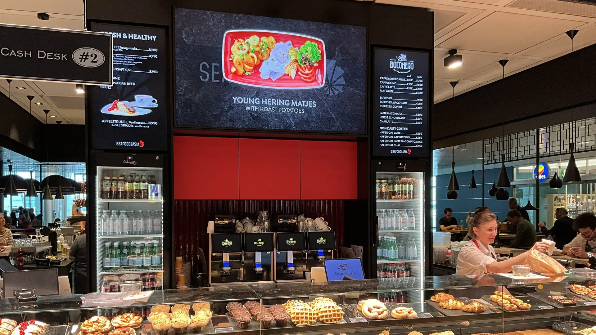 Am Flughafen München, im Terminal 2 auf Ebene G, hat das Restaurant "Seafood meets Asia" eine moderne Aufwertung erhalten. Dank der Installation von 11 neuen Smartbildschirmen von Shop-IQ können die Gäste nun animierte Menüboards genießen, die von unserer Marketingabteilung gestaltet wurden. Diese Bildschirme präsentieren die Speisekarte, aktuelle Angebote und saisonale Specials auf ansprechende Weise. Diese Neuerungen schaffen ein modernes und stilvolles Ambiente, das den Besuch im "Seafood meets Asia" zu einem besonderen Erlebnis macht.