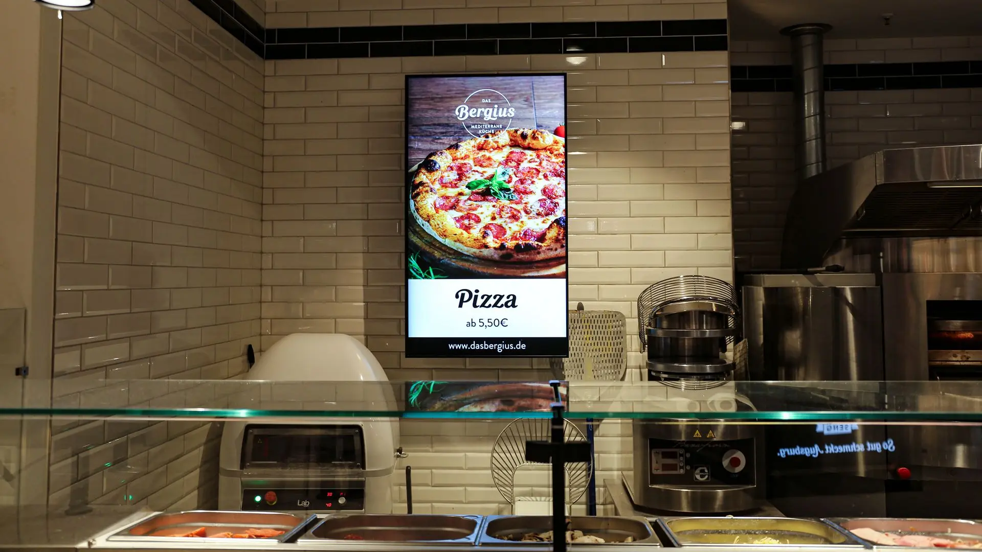 Im hauseigenen Restaurant "Das Bergius" wird unser Modul Marketing ebenfalls genutzt, um spezielle Menüs, Tagesangebote und exklusive Events zu bewerben. Die Displays können auch Informationen über Veranstaltungen oder Verkostungen in der Einkaufswelt ankündigen, was zusätzliche Besucher anzieht.